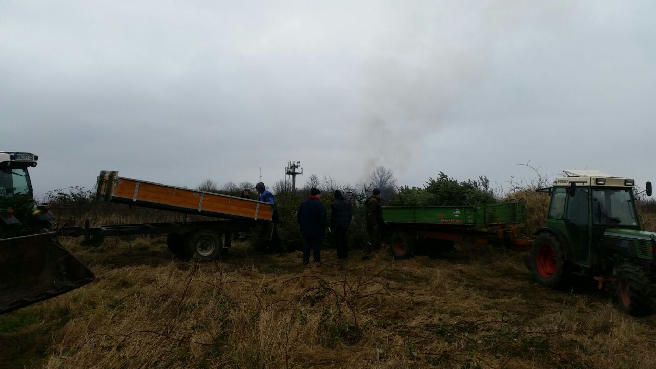 Am Samstag morgen ging es um 9:00 Uhr los und nach wenigen Stunden waren die Bäume eingesammelt. Dank der freundlichen Unterstützung unserer Winzer und Einsatzmannschaft konnten diese dann erfolgreich verbrannt werden.
