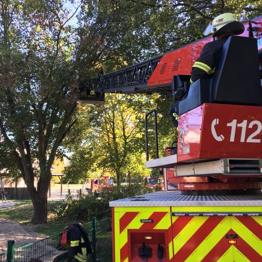 Nach der Herbstabschlussübung wurden wir am Mittag zu einem Sturmschaden auf dem Spielplatz alarmiert.